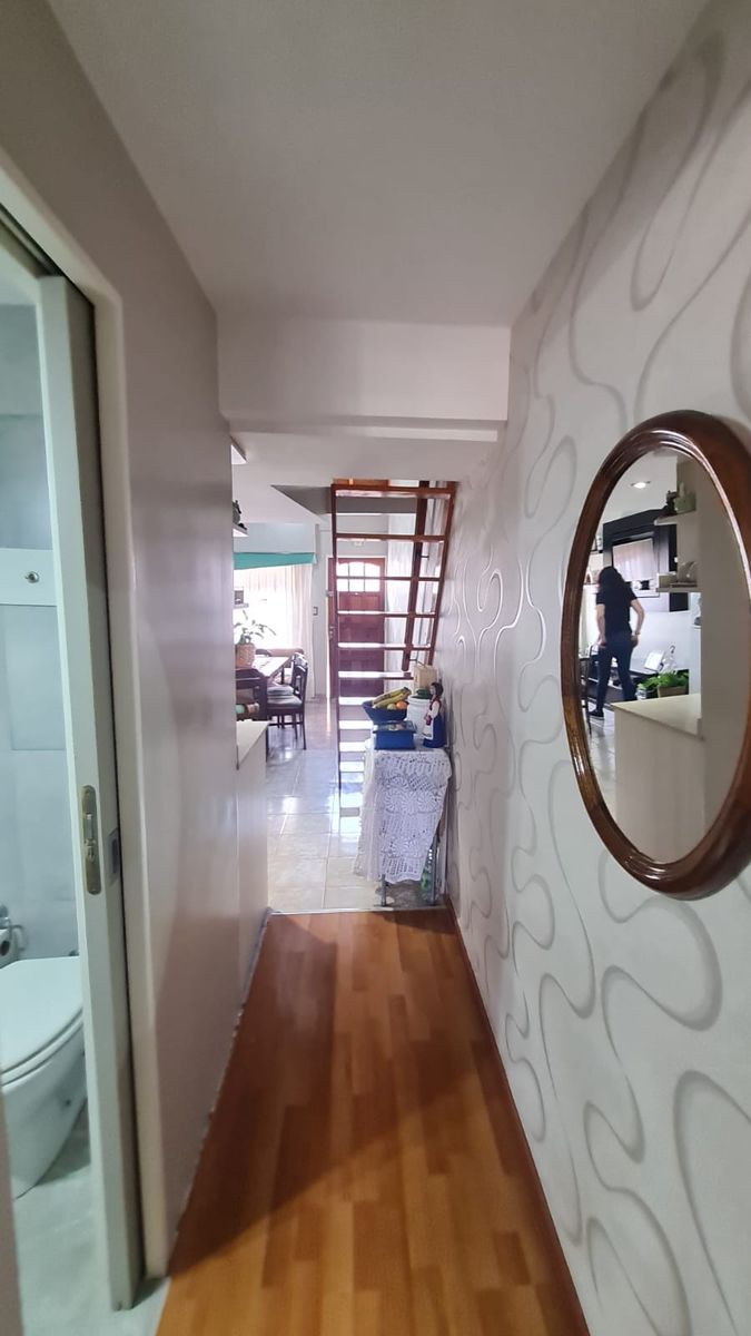 Hall piso flotante, Baño totalmente instalado, piso y revestimiento de porcelanato.