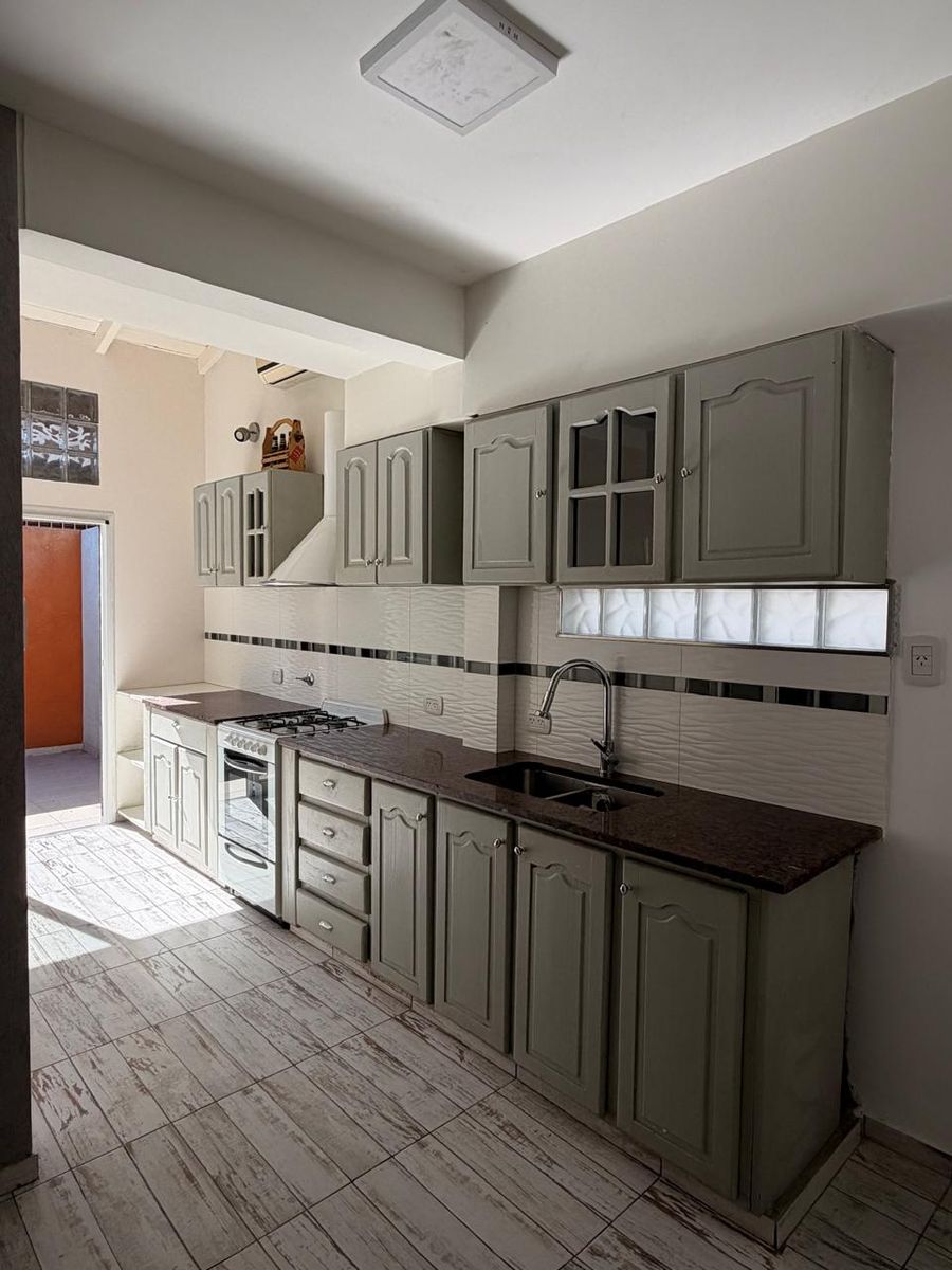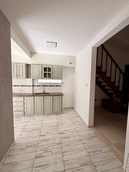 Cocina comedor piso porcelanato con muebles completos, bajo mesada y alacenas.